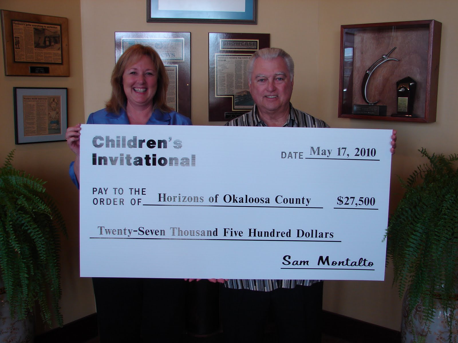 The 14th Annual Pandora’s Charity Golf Tournament raised over $120,000, to be distributed evenly among the Children’s Home Society of Florida, Silver Sands School, Special Olympics of Okaloosa County, and Horizons of Okaloosa County. Pictured here is Horizons CEO and Friend of the Beachcomber Dr. Julie McNabb.